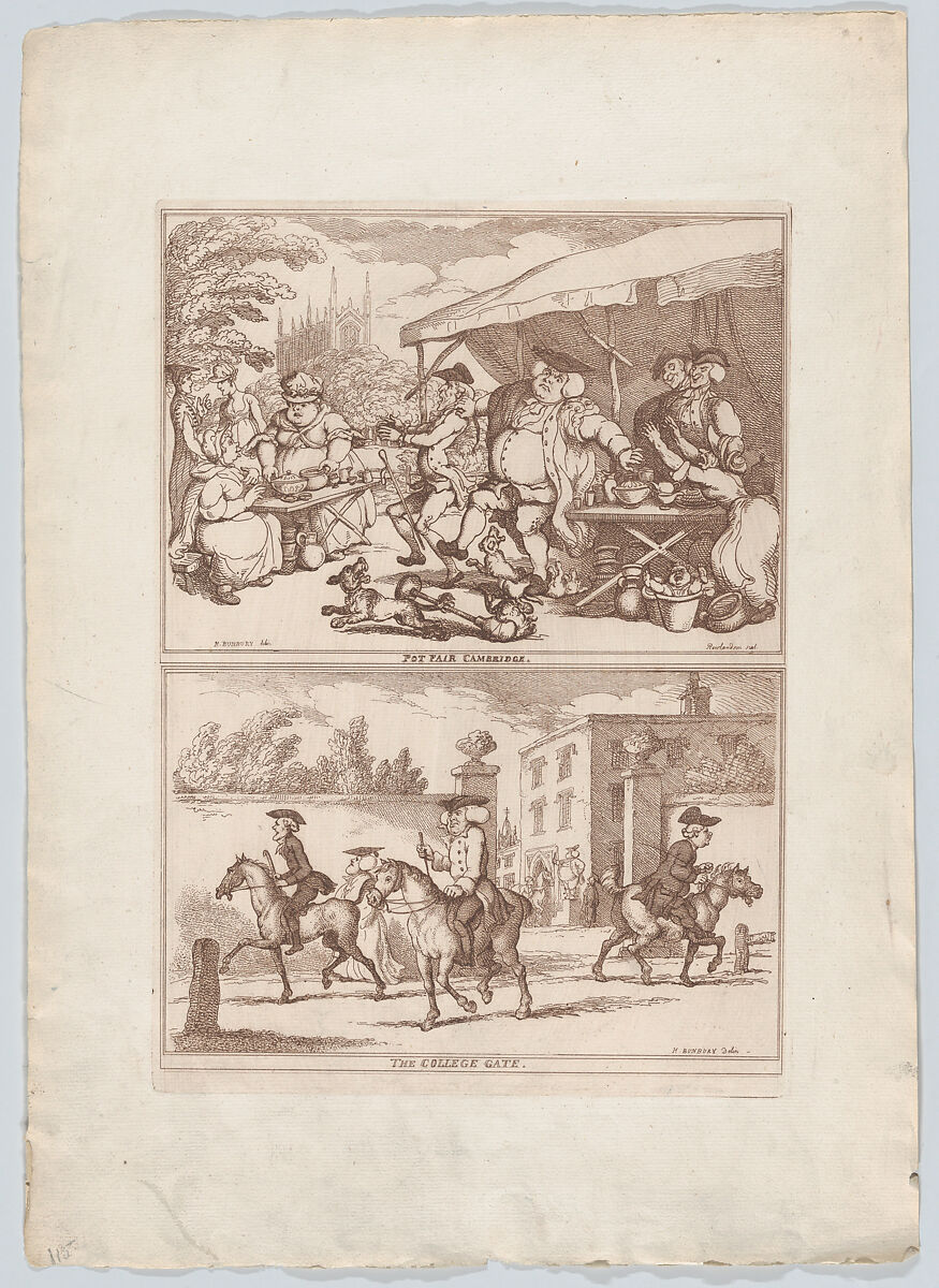 Two scenes printed on one sheet, the subjects relate to Bunbury's days as a student at Cambridge.