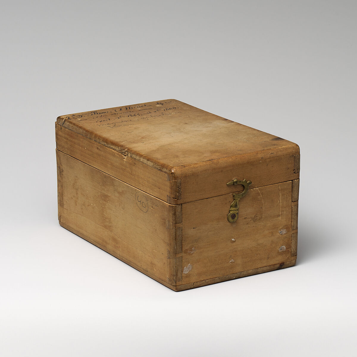Girault worked with unusually large plates, innovating a process to expose more than one image on each plate and then cut them apart. A fastidious archivist, he carefully labeled the resulting photographs and stored them according to size in custom-built boxes. He inventoried his collection several times, as evidenced by inscriptions on the box lids. Girault’s unique and arresting works—more than one thousand survive, many of which are on view in the current exhibition—attest to a photographic feat that remains unparalleled in scope and scale.