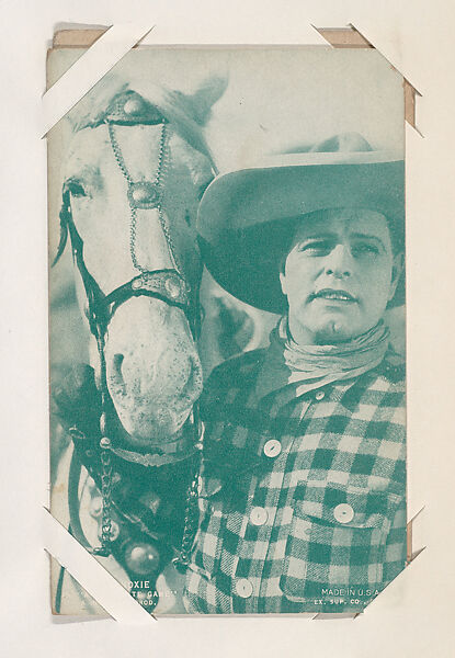 From Western Stars or Scenes Exhibit Cards series (W412). Distributed by Exhibit Supply Company of Chicago. Postcard-sized thick card. Dispensed in arcade machines. Color toned.