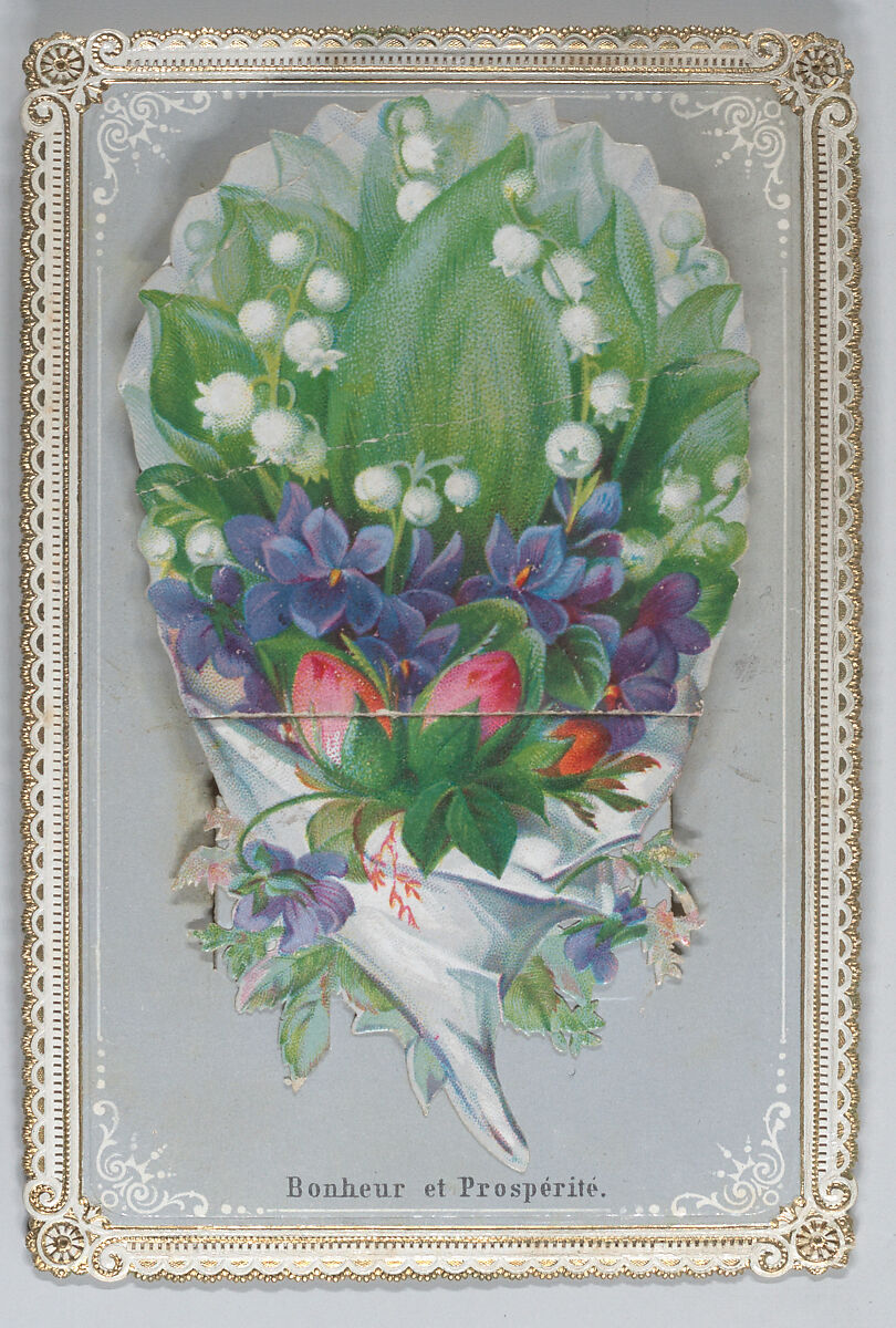 - Medium:Heavy card-stock, chromolithography with gilding, die-cut chromolithigraphed scrap, ink