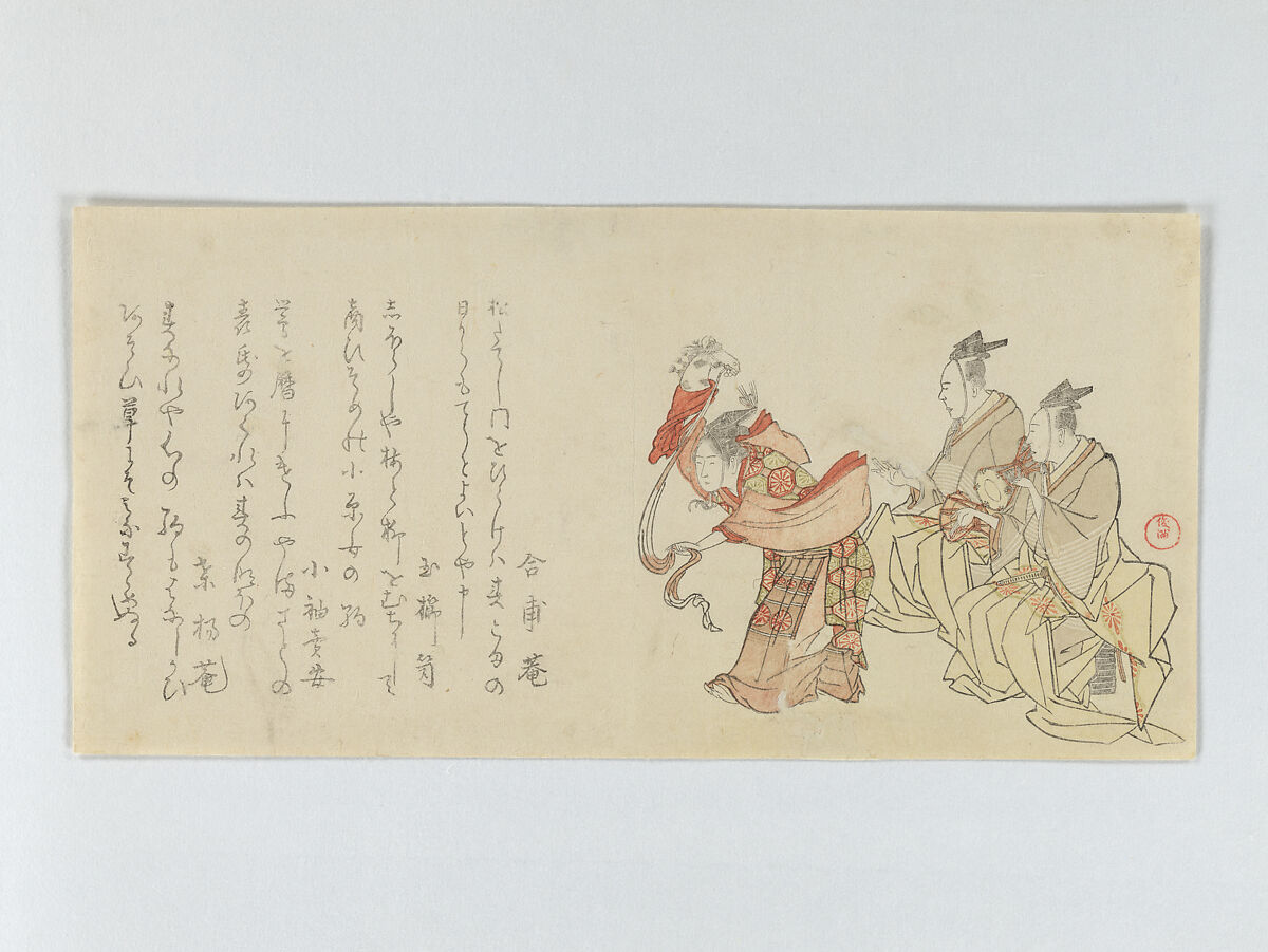 - Medium: Woodblock print (surimono); ink and color on paper