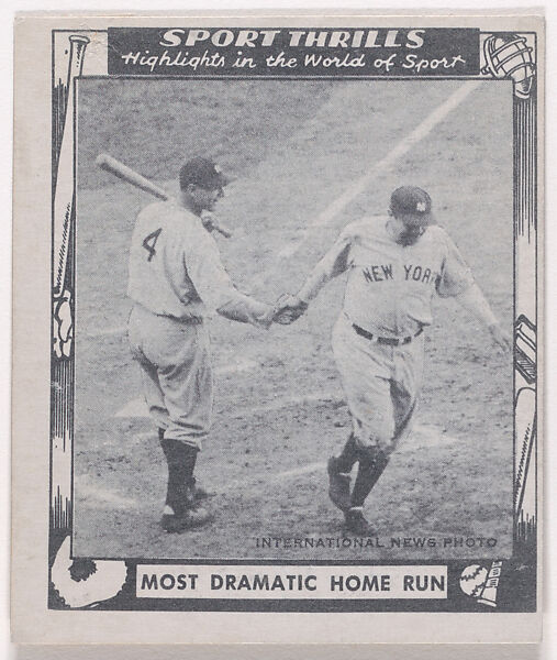 - Title:Most Dramatic Home Run, from the "Sport Thrills" series (R448), issued with Swell Bubble Gum by the Philadelphia Chewing Gum Corporation