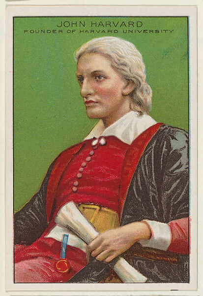 - Title: John Harvard, Founder of Harvard University, from the "Heroes of History" series (T68), issued with Miners Extra Smoking Tobacco, Natural Leaf Scrap, and Royal Bengals Little Cigars