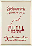 - Title:Schrafft's, Syracuse, New York presents Pall Mall King Size, from the "Hotel Greeting Cards" series (T71), issued by R. J. Reynolds Tobacco Company