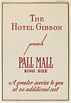 - Title:The Hotel Gibson presents Pall Mall King Size, from the "Hotel Greeting Cards" series (T71), issued by R. J. Reynolds Tobacco Company