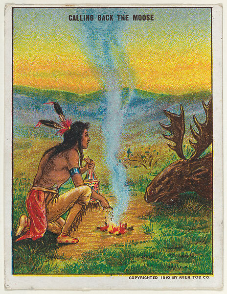 - Title:Calling Back the Moose, from the "Indian Life in the 60's" series (T73), issued with Hassan Cork Tip Cigarettes by the American Tobacco Company