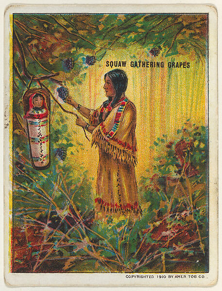 - Title: Squaw Gathering Grapes, from the "Indian Life in the 60's" series (T73), issued with Hassan Cork Tip Cigarettes by the American Tobacco Company