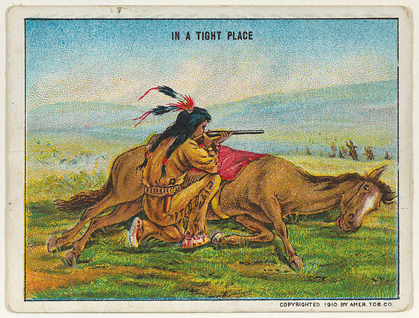 - Title: In a Tight Place, from the "Indian Life in the 60's" series (T73), issued with Hassan Cork Tip Cigarettes by the American Tobacco Company