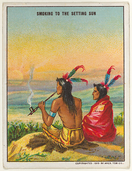 - Title:Smoking to the Setting Sun, from the "Indian Life in the 60's" series (T73), issued with Hassan Cork Tip Cigarettes by the American Tobacco Company