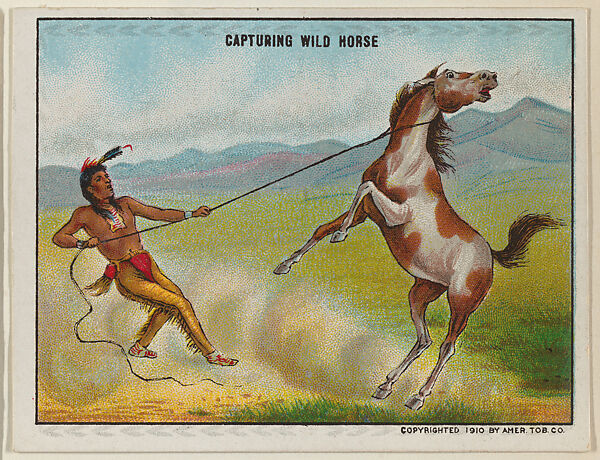 - Title: Capturing Wild Horse, from the "Indian Life in the 60's" series (T73), issued with Hassan Cork Tip Cigarettes by the American Tobacco Company