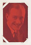From Movie Stars Exhibit Cards series (W401). Distributed by Exhibit Supply Company of Chicago. Postcard-sized thick card. Dispensed in arcade machines.Red toned.