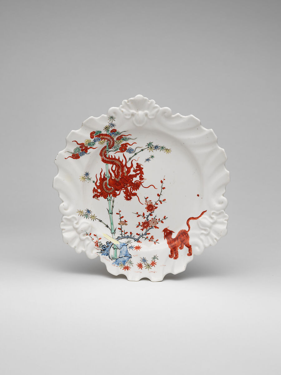 - Title: Plate decorated with Japanese Kakiemon-inspired scene with twisted dragon