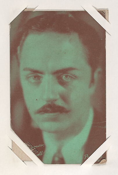 From Movie Stars Exhibit Cards series (W401). Distributed by Distributed by Exhibit Supply Company of Chicago, Mutoscope or other companies. Postcard-sized thick card. Dispensed in arcade machines. Color toned.