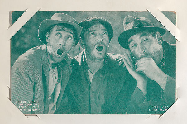 - Title: Arthur Stone, Clyde Cook and Mitchell Lewis in "Miss Nobody" from Scenes from Movies Exhibit Cards series (W404)