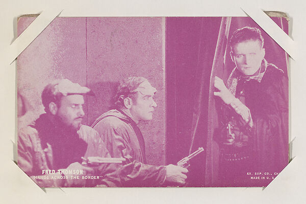 From Western Stars or Scenes Exhibit From Western Stars or Scenes Exhibit Cards series (W412). Distributed by Exhibit Supply Company of Chicago. Dispensed in arcade machines. Postcard-sized thick card. Color toned.