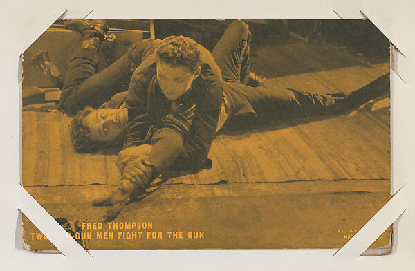 - Title:Fred Thompson Two Two-Gun Men fight for the gun from Western Stars or Scenes Exhibit Cards series (W412)