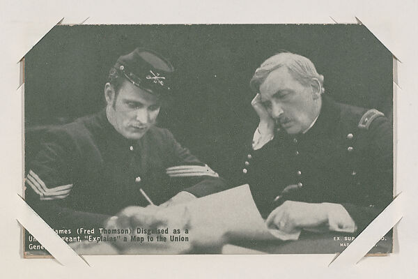 - Title:Jesse James (Fred Thomson) Disguised as a Union Sergeant "Explains" a Map to the Union General from Western Stars or Scenes Exhibit Cards series (W412)