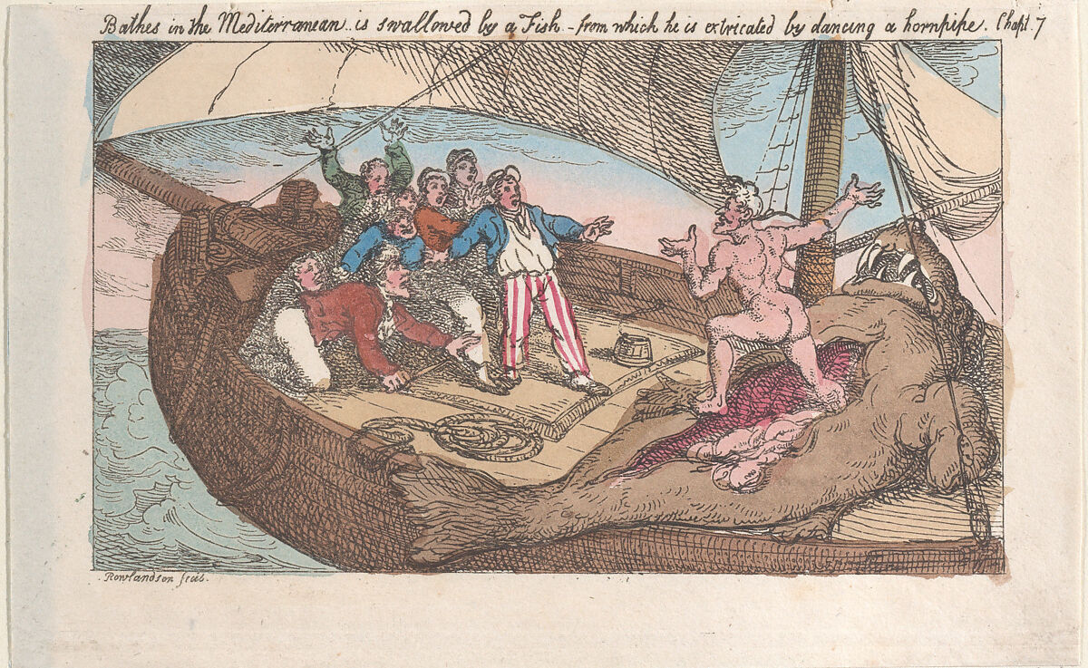 - Title:Bathes in the Mediterranean, is swallowed by a fish, from which he is extricated by dancing a hornpipe