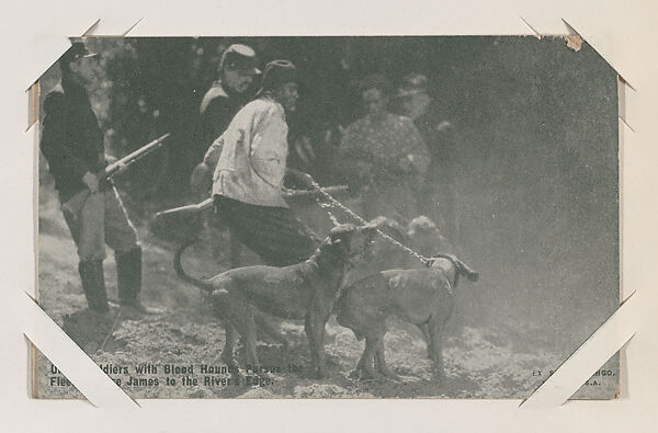 - Title:Union Soldiers with Blood Hounds Pursue the Fleeing Jesse James to the River's Edge from Western Stars or Scenes Exhibit Cards series (W412)