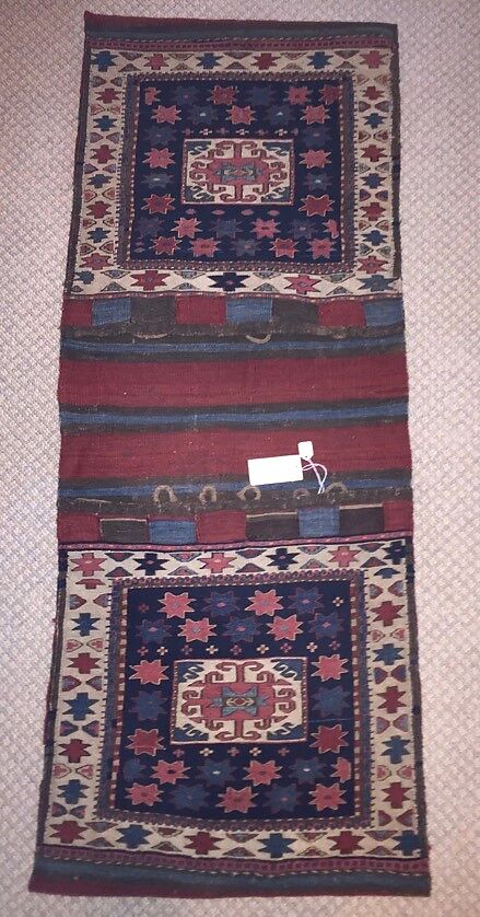 Such textiles were woven by nomadic tribes as containers for everyday items. Some were designed specifically to transport or store bedding, flour, salt, and wooden spindles used to make the woolen yarns from which these works were woven. Others were of smaller size, comparable to cross-body women's handbags, or çanta, or also possibly used by children. Most notable is the ubiquitous double saddlebag, known as a khorjin in Iran and a heybe in Turkey. The equivalent of backpacks, briefcases, and purses, double saddlebags were woven in various sizes across the Middle East, from Anatolia to Central Asia, and used to hold anything from jewelry to clothing.