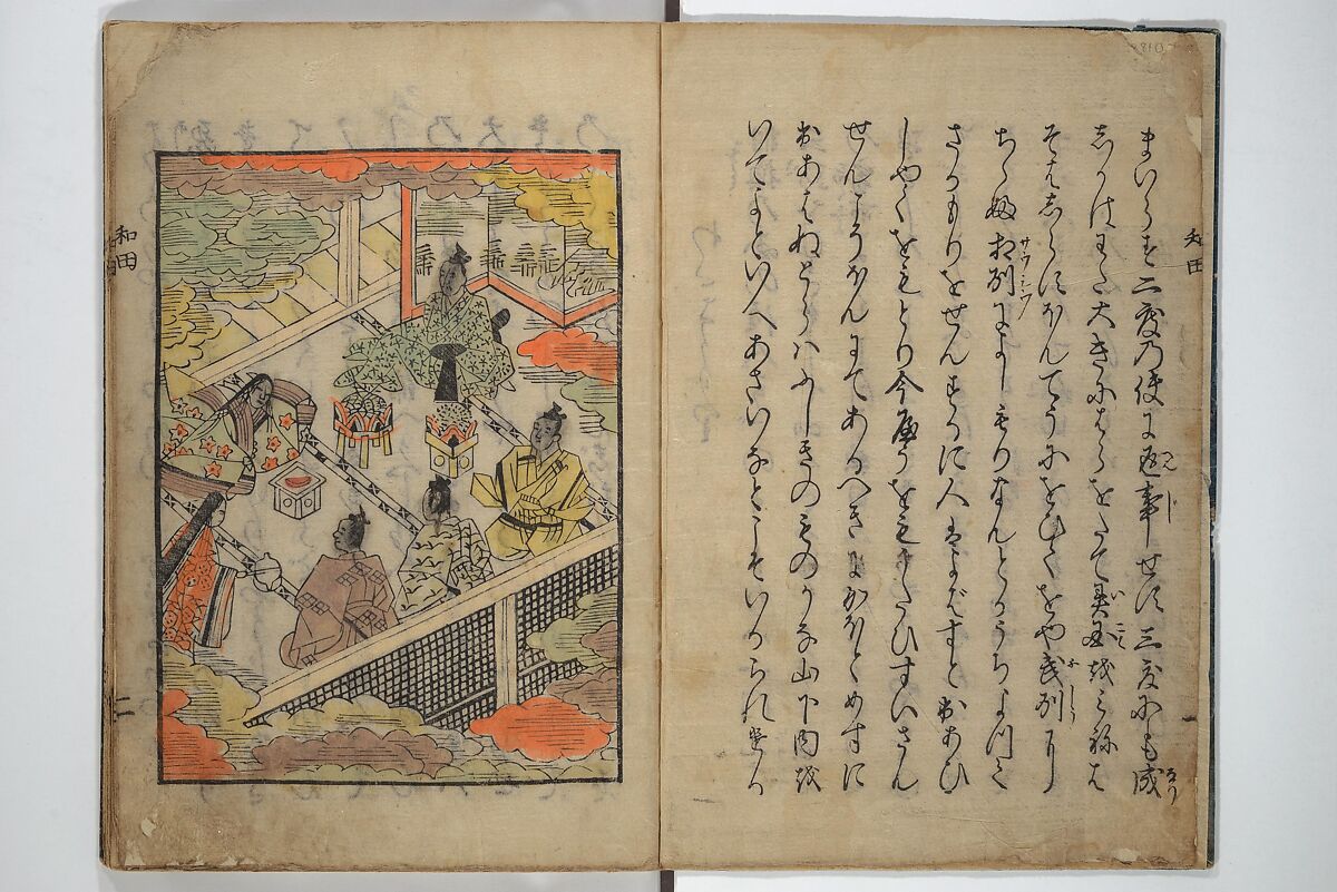 - Medium: Woodblock printed book; ink with hand-coloring (tanroku bon)