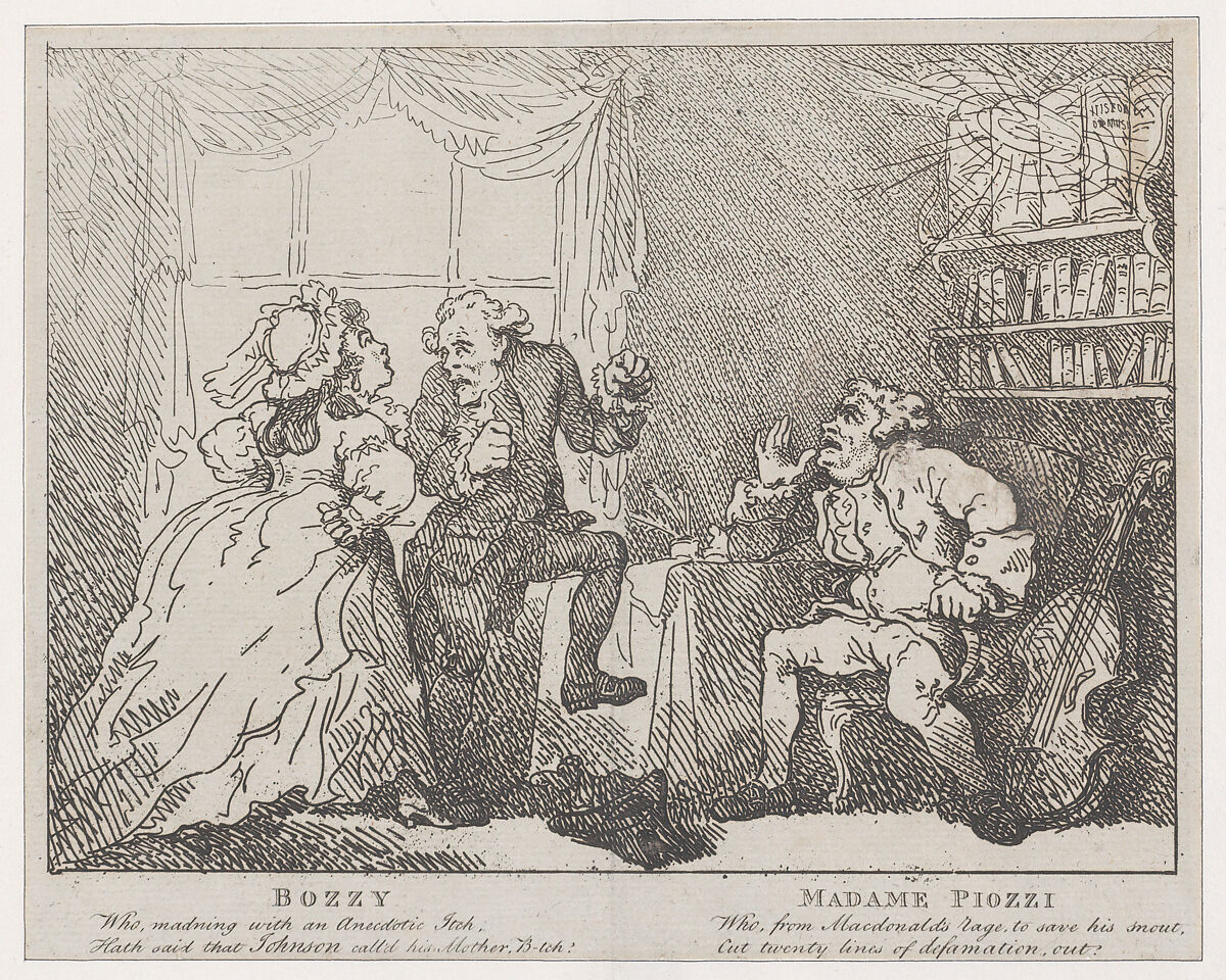 - Title: Bozzy and Madame Piozzi (Frontispiece, "Bozzy and Piozzi" by Peter Pindar)