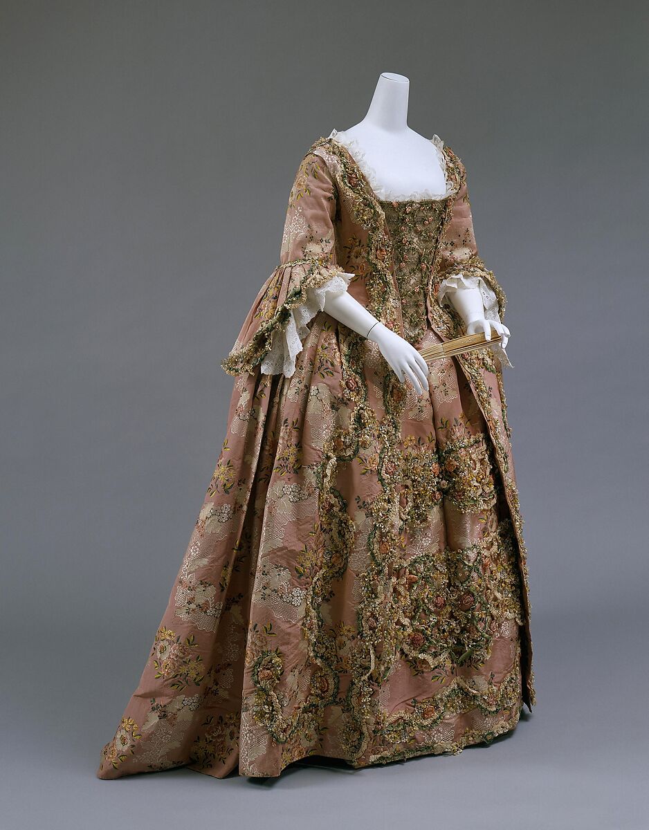 "With the spring," noted Mrs. Eric Pritchard in The Cult of Chiffon (1902), "comes naturally enough a tendency towards bright shades, seeing that `all the world is young,' and the buds are bursting forth into bloom; consequently tender tones of greens, yellows, pinks, and blues most strongly appeal to us. ... in the days when skies are blue and grass is green, we cast behind us the gloomy and cold tones of winter." Spring's irrepressible generosity is suggested in floral pattern echoed in the fly fringe's "virtual" flora.