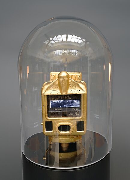 When All Roads Are One is a free standing sculptural video work in which Aharoni alights on the act of making a pilgrimage to explore notions of intercultural connectivity and co-existence. A pilgrimage is a ritual undertaken by scores of people, across geographies and generations. It is not circumscribed or limited to a moment, but continues to endure as an act of faith, devotion and dedication across time. When All Roads Are One is the culmination of the ideas explored in the larger installation The Road to Sanchi composed of twelve sculptures, each made from an obsolete taximeter found in India into which Aharoni has inserted video screens. These individual sculptures replay footage shot by Aharoni over a decade from moving rickshaws, while making pilgrimages to four sacred sites in India. Aharoni chose Buddhist, Jewish, Islamic and Hindu heritage sites— Sanchi, Mattanchery, Nizamuddin and Varanasi respectively. Aharoni is careful not to picture the actual monument or site in his videos, keeping the focus on the "road" or the journey made to each site. Aharoni saw this object as containing "the metaphorical energy of thousands of journeys," and wanted to connect to this history and carry it forward to the digital age. Aharoni animates an inanimate object, and creates a new context for it, by putting it on a pedestal and under a glass dome, which takes on a hybrid form between a time capsule and a stupa. When All Roads Are One merges all the films that play across the twelve sculptures of The Road to Sanchi, converted into black and white and by integrating these different trips into one vivid trip, Aharoni engenders a cross-cultural pilgrimage, asserting that the sacred journey as existing above religious divides. The taximeter in When All Roads Are One is cased in 23 karat gold leaf and becomes a reliquary that seeks to challenge current monolithic notions about sacred landscapes, sites and pilgrimage.