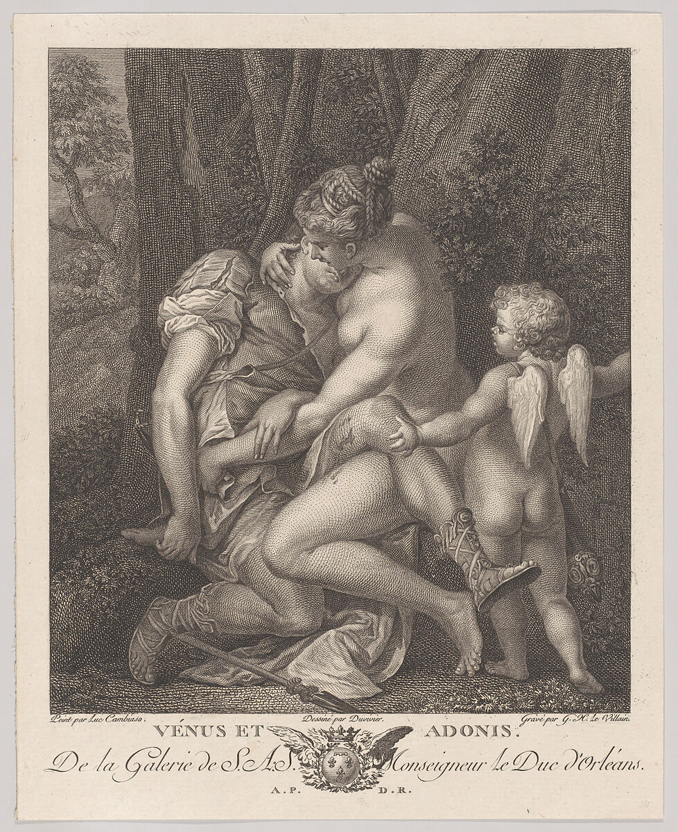 - Title:Venus mourning Adonis, seated beneath a tree and embracing him, with Cupid at right