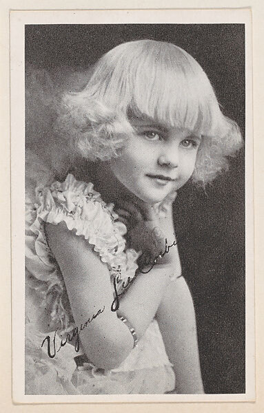 Virginia Lee Corbin from "Leading Moving Picture Stars" (W623). Issued ca. 1917 by Kromo Gravure Photo Company, Detroit, Michigan. Several sets of photos of early silent film screen stars were available over the counter in packages/ boxed sets of 50 unnumbered cards for a dime. Cards were sold to other companies for their movie card promotions. Blank back or may include advertising information. Black and white images with white borders. Facsimile signatures. Printed on heavy paper stock. Kromo Gravure and title -- "Leading Moving Picture Stars" -- printed on box.