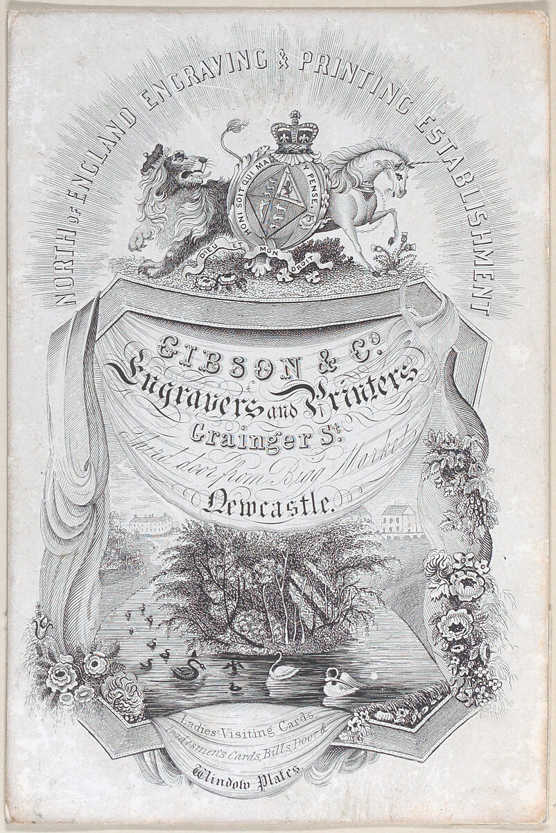 - Title: Trade card for North of England Engraving & Printing Establisment, Gibson & co., engravers and printers