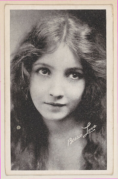 Bessie Love from "Leading Moving Picture Stars" (W623). Issued ca. 1917 by Kromo Gravure Photo Company, Detroit, Michigan. Several sets of photos of early silent film screen stars were available over the counter in packages/ boxed sets of 50 unnumbered cards for a dime. Cards were sold to other companies for their movie card promotions. Blank back or may include advertising information. Black and white images with white borders. Facsimile signatures. Printed on heavy paper stock. Kromo Gravure and title -- "Leading Moving Picture Stars" -- printed on box.