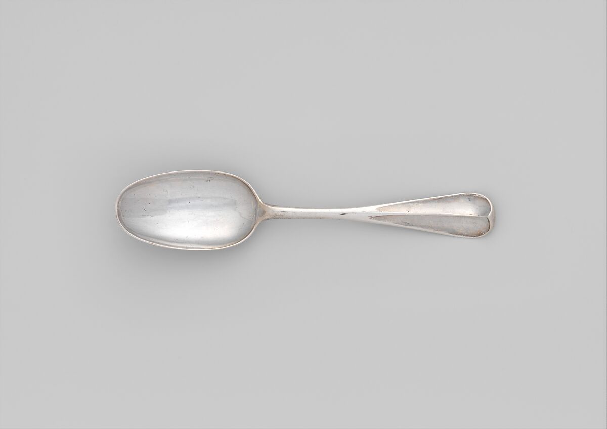 This table spoon is one of a set of three. Although these table spoons were at one time attributed to Joseph Richardson of Philadelphia, it now seems probable that they were made by Jonathon Reed in Boston. The inscription on these spoons refers to John and Elizabeth Tousel, who were married in 1720. The spoons are matched by two others now in the Museum of Fine Arts, Boston.