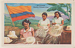 Ecuador from Good Neighbors of the Americas Educational Pictures (W608-1). Published by D. Robbins & Co., New York City. 24 pictures in set. Front: hand-drawn color reproduction which includes flag of country. White border. Back includes text regarding highlighted country. #13. Lower right in image: CHAS. ROSNER.