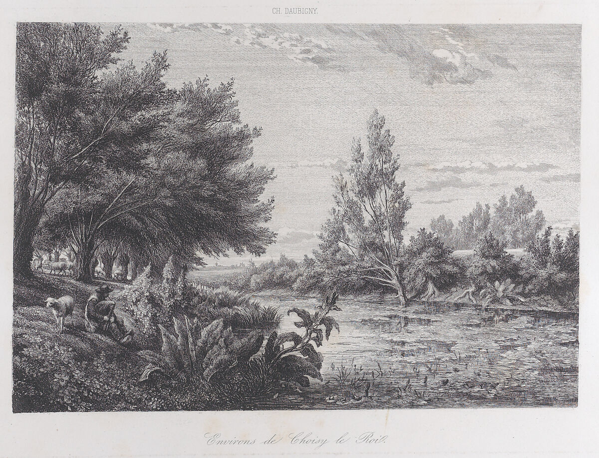 This etching of a marshy landscape southeast of Paris reproduces a painting of the same title, now lost, that Daubigny exhibited in the Salon of 1843. At this early point in his career, Daubigny made his living as an illustrator. His skills as a printmaker also enabled him to promote and circulate reproductions of his own Salon submissions. This print was published in the short-lived periodical "Les Beaux-Arts: Illustration des Arts et de la Littérature."