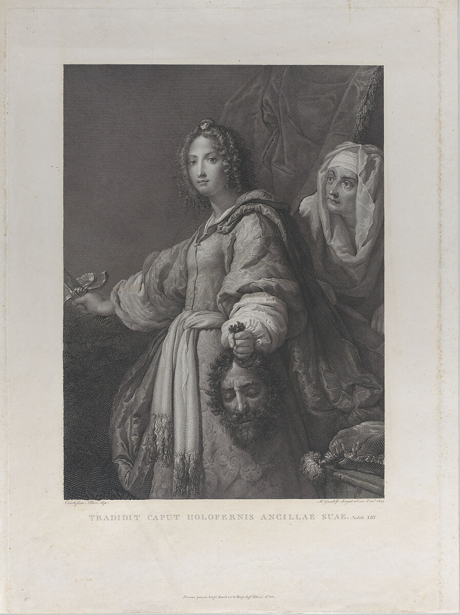 - Title: Judith holding the head of Holofernes and a sword, her maid behind her at right