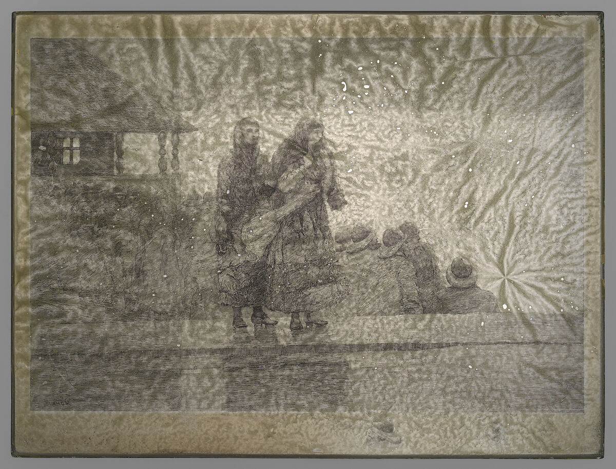 In 1941 the Museum acquired this as one of five Homer printing plates from an important group of eight made 1882–89. The titles of plates now at the Met are The Life Line, Eight Bells, Mending the Tears, Perils of the Sea, and Fly Fishing, Saranac Lake. Homer worked on these plates after returning to the United States in 1882 from two years in England. While initially self-taught as an etcher, the artist worked closely with the New York printer George W. H. Ritchie in the multi-stepped etching process–with Ritchie proofing and editioning all lifetime impressions. Ritchie's assistant, Charles S. White, eventually purchased Ritchie's business and stock, including the five plates, selling them to the Met in 1941. At that time, Print Department curator William M. Ivins, Jr. asked White to print sets of restrikes from the plates. Generally, he wiped the surfaces of the plates clean to produce drier and more linear images than richly toned lifetime impressions. Eight restrikes were added to the collection to allow for comparative study (41.20.1-.8) and others would later be offered for sale through the Museum's Mezzanine Gallery to raise acquisition funds.