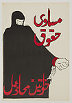 During a time of severe Islamization under the military dictatorship of General Zia Ul Haq in 1980s Pakistan, which fostered an increasingly oppressive environment for women, Lala Rukh involved herself with the women’s movement, co-founding the Women’s Action Forum (WAF) and commencing a life-long commitment to political activism. Rukh was proactively involved in the Forum’s activities when local printers controlled by the government in Lahore refused to print their protest materials and newsletters. Rukh began screen printing, designing and producing many of the WAF’s provocative posters that called for the equal rights and freedom of women. Masaawi Haqooq hails from this group of posters. The image on the poster depicts a woman in a burqa who is shackled speaking directly to the position of women and repressive laws they were subjected to under Haq’s government.