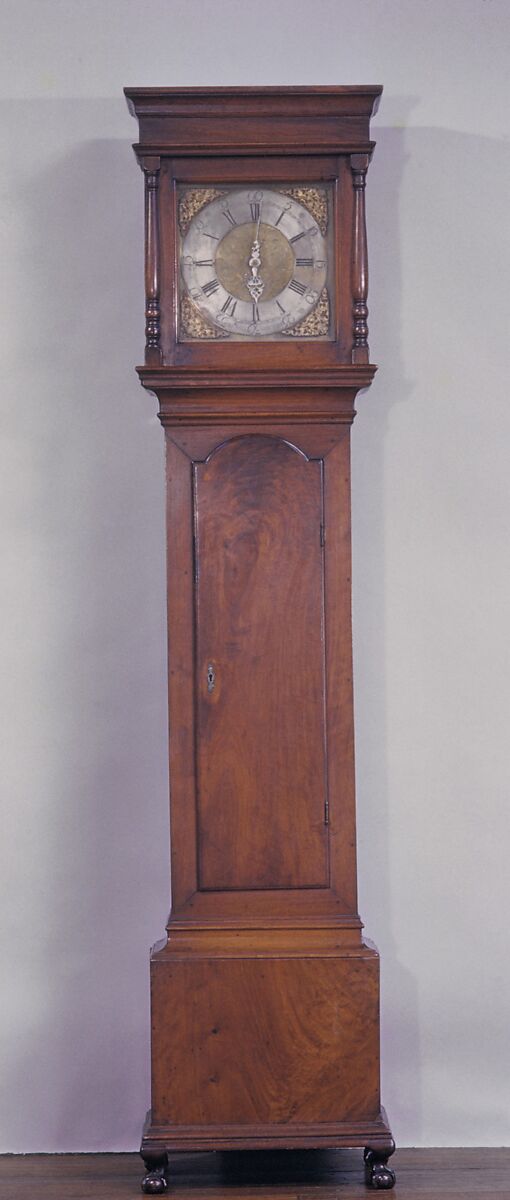 The dial of this clock is the only one known to be signed by Henry Hill. The rare New York origin for this eighteenth-century clock is based on the inscription, but the case is also typical of American clocks made in the mid-Atlantic region during the second quarter of the eighteenth century. The style apparently originated in the Philadelphia area, and many examples from that city are known. There are some Queen Anne features which also justify a mid-century date.