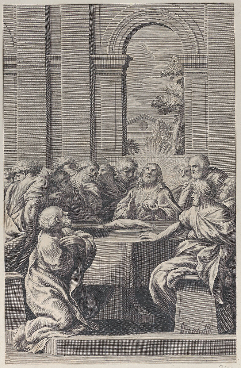 - Title: The Last Supper, the interior of a classical building with Christ and his apostles seated at a table