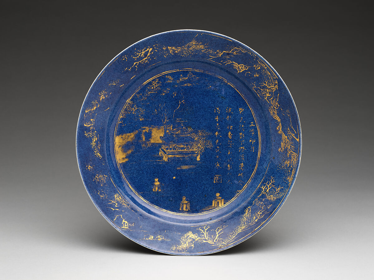- Medium: Porcelain with powder blue glaze and gold decoration (Jingdezhen ware)