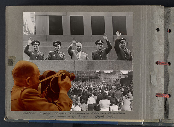This personal album, assembled by a cinematographer hired to document cosmonaut training, offers an intimate view of the triumphant visual culture surrounding the Soviet space program. Until the mid-1960s, the Soviet Union appeared to be winning the space race. Under the direction of the pioneering rocket engineer Sergei Korolev, the program achieved a string of headline-making "firsts." They were the first to send into orbit an earthborn creature (the canine cosmonaut Laika in 1957), a man (Yuri Gagarin in 1961), and a woman (Valentina Tereshkova in 1963). These and other Soviet space pioneers appear in the album's pages.
