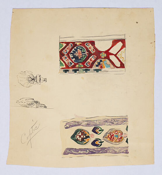 - Title: Color study of Coptic patterns (recto); Sketch of a lamp (verso)