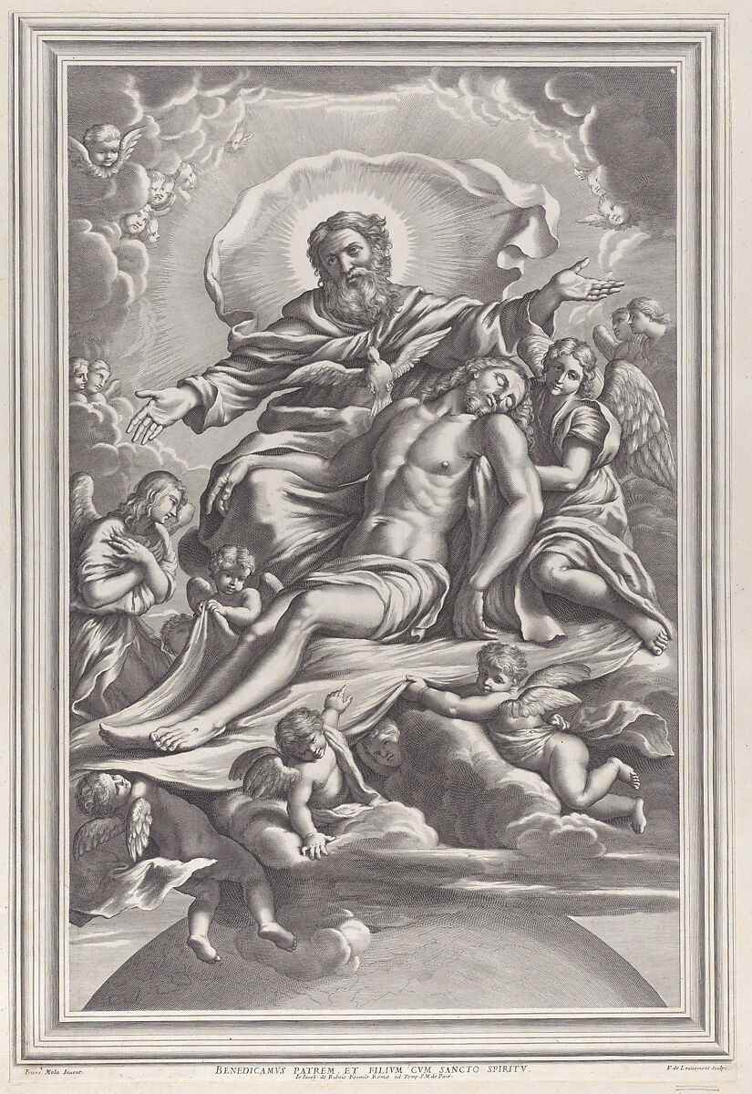 - Title: The Holy Trinity, with the dead Christ at center surrounded by angels, God the Father, and the Holy Spirit
