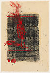 - Medium: Monotype with red gouache on rice paper with black-and-white stamping