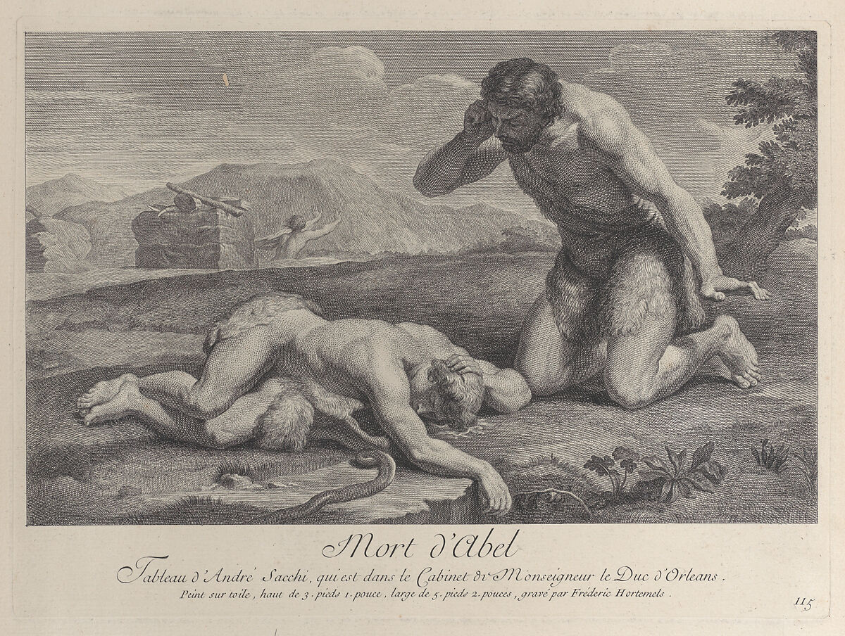 - Title: Adam kneels in grief beside the body of Abel, while Cain flees in the background