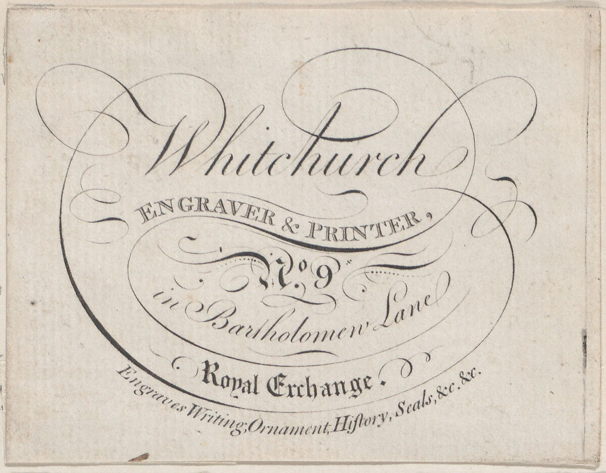 - Title:Trade Card for Whitchurch, Engraver & Printer