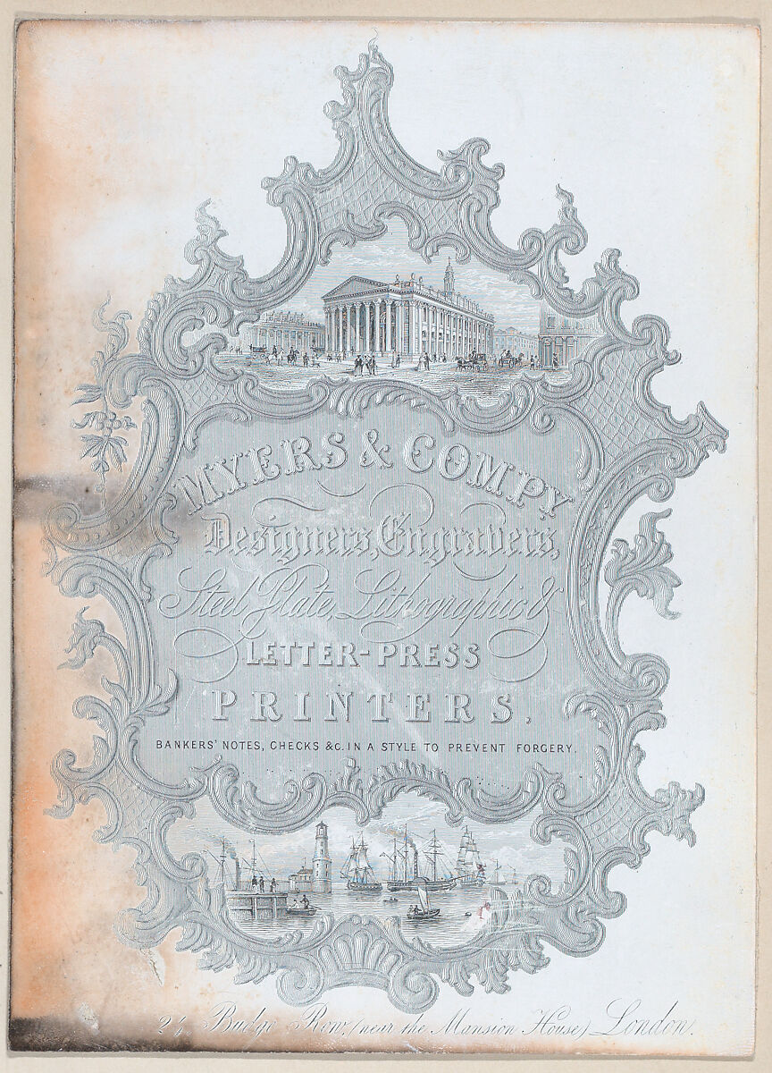 - Title:Trade Card for Myers & Co., Designers, Engravers, Steel Plate, Lithographic & Letterpress Printers