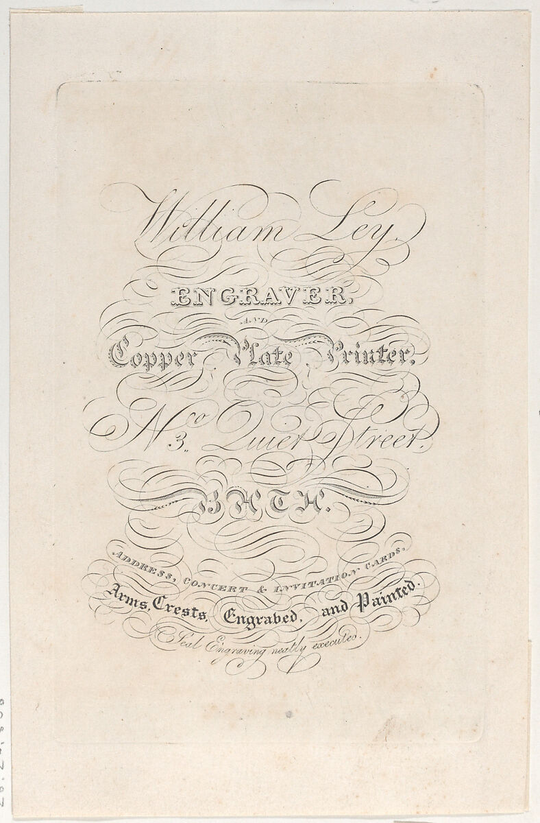 Trade Card for William Ley, Engraver & Copper Plate Printer
