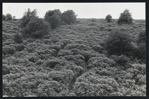 With their intimate scale and satisfying physicality, these 12 photographs by Richard Long reward attention in a way akin to the original aesthetic experience of seeing his sculpture on site and firsthand. Photography was crucial, of course, in recasting the idea of sculpture in the 1960s, as the idea of portable, salable art objects came under attack by the countercultural generation of Minimal and Postminimal sculptors. And in that spirit, Long early on coined the term "Public Freehold" to designate his ephemeral interventions in the landscape as "independent of ownership—just out there." He then began to apply that term to his own photographs of his sculpture. The "Public Freehold" prints represent the source images from which prints for exhibition or more frequently reproduction would be made.